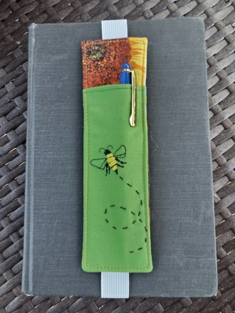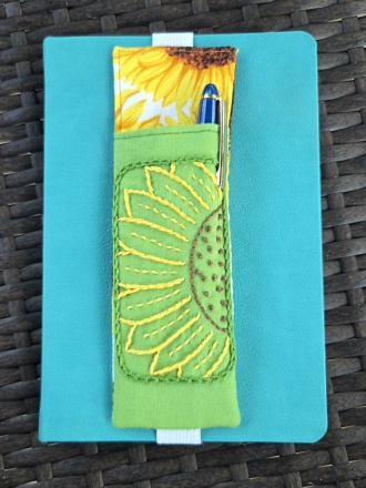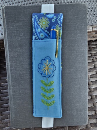 This cute, hand-embroidered flower pouch will keep your favorite pen handy and can also function as a bookmark.